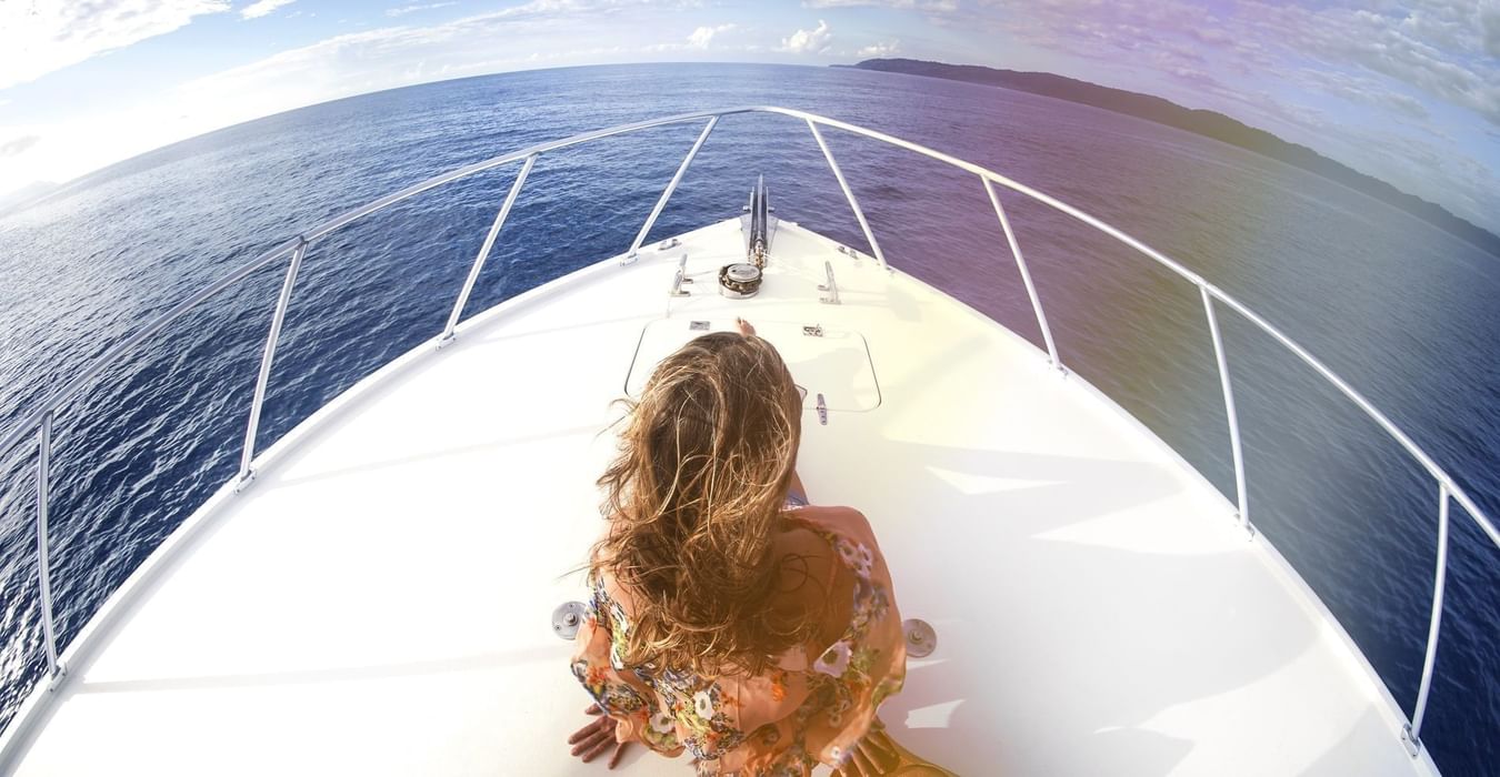 Aerial view of a Yacht in a river at Marina Bahia Golfito near Amaka Ocean Living Lodge